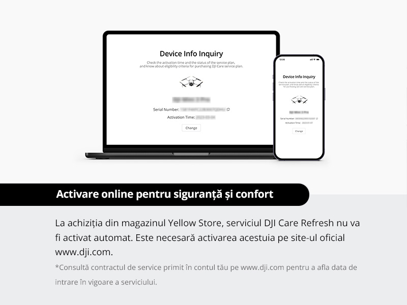 ATENȚIONARE! Trebuie să activezi DJI Care Refresh în termen de 48 de ore de la activarea produsului tău DJI.