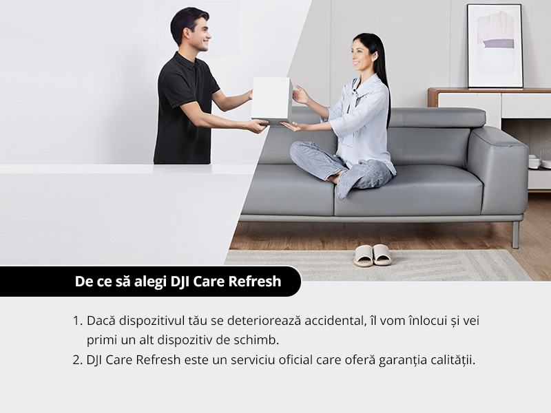 Condiții pentru reînnoirea serviciului - dacă ai achiziționat anterior DJI Care Refresh pentru dispozitivul tău, poți prelungi perioada de acoperire cu un plan DJI Care Refresh (1 An) în termen de maximum 15 zile de la data expirării serviciului curent. Poți extinde valabilitatea serviciului până la o durată totală de 3 ani. Planul DJI Care Refresh (2 Ani) nu este disponibil ca opțiune de reînnoire.