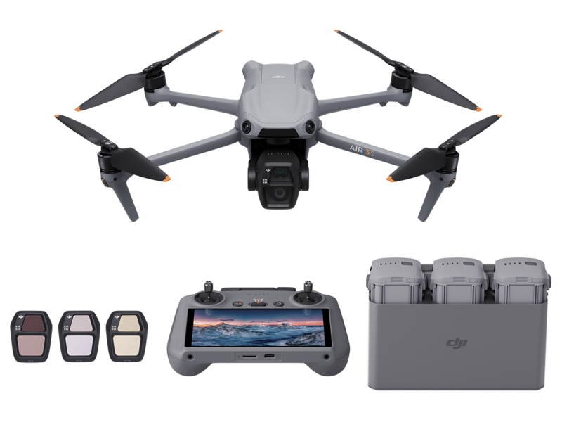 | Continut pachet | 1 x Drona DJI Air 3S; 1 x Telecomanda DJI RC 2; 3 x Baterie inteligenta DJI Air 3S; 1 x Protectie gimbal; 3 x Elice de rezerva DJI Air 3S (pereche); 1 x Cablu de date USB-C - USB-C PD; 1 x Set filtre ND DJI (ND8/32/128); 1 x Hub de incarcare DJI Air 3S; 1 x Geanta de umar |