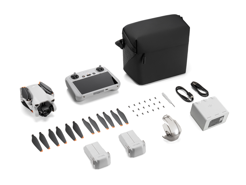 | Continut pachet | 1 x Drona DJI Mini 3; 1 x Telecomanda DJI RC; 3 x Baterie inteligenta DJI Mini 3; 1 x Protectie gimbal; 1 x Cablu conector USB-C; 1 x Cablu de date USB-C - USB-C PD; 3 x Elice de rezerva DJI Mini 3 (pereche); 18 x suruburi; 1 x surubelnita; 1 x Hub de incarcare bidirectional; 1 x Geanta de umar |
