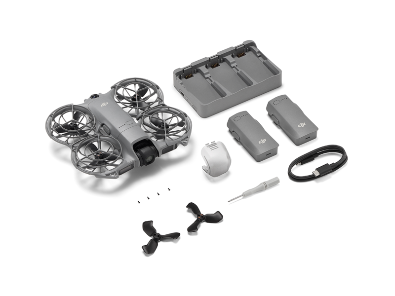 | Continut pachet | 1 x Drona DJI Neo 2; 3 x Baterie inteligenta DJI Neo 2; 1 x Protectie gimbal; 1 x Cablu de date USB-C - USB-C; 1 x Elice de rezerva DJI Neo 2 (pereche); 1 x Protectie elice DJI Neo 2 (pereche); 4 x suruburi; 1 x surubelnita; 1 x Hub de incarcare bidirectional |