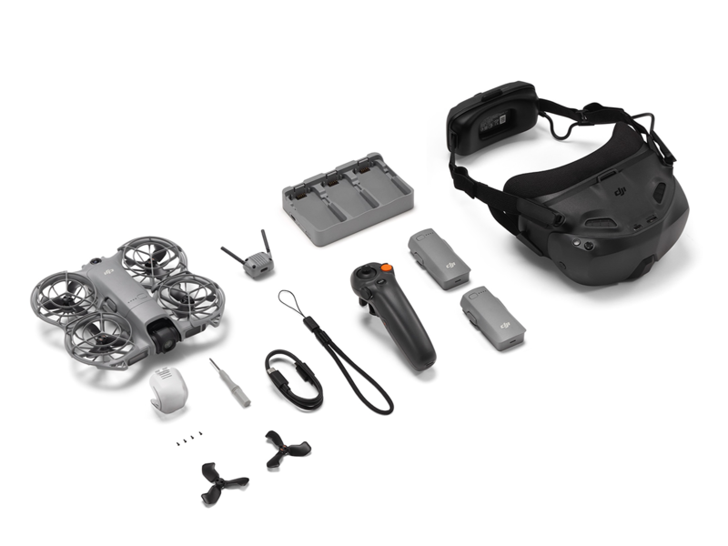 | Continut pachet | 1 x Drona DJI Neo 2; 1 x Telecomanda tip joystick DJI RC Motion 3; 1 x DJI Goggles N3; 3 x Baterie inteligenta DJI Neo 2; 1 x Protectie gimbal; 1 x Cablu de date USB-C - USB-C; 1 x Elice de rezerva DJI Neo 2 (pereche); 1 x Protectie elice DJI Neo 2 (pereche); 4 x suruburi; 1 x surubelnita; 1 x Hub de incarcare bidirectional; 1 x DJI Neo 2 Transceiver |